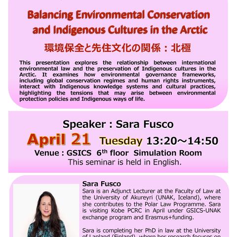 [PCRC/GSICS International Law Seminar] Special Lecture by Ms.Sara Fusco (Akureyri University) (4/21, 13:20~)