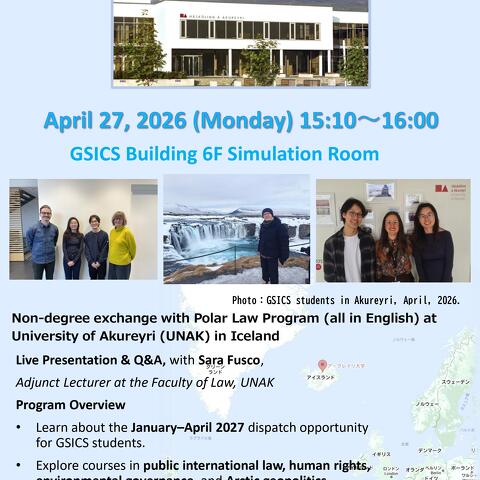 Information Session on the Exchange Program with the University of Akureyri (Iceland) (4/27, 15:10~)